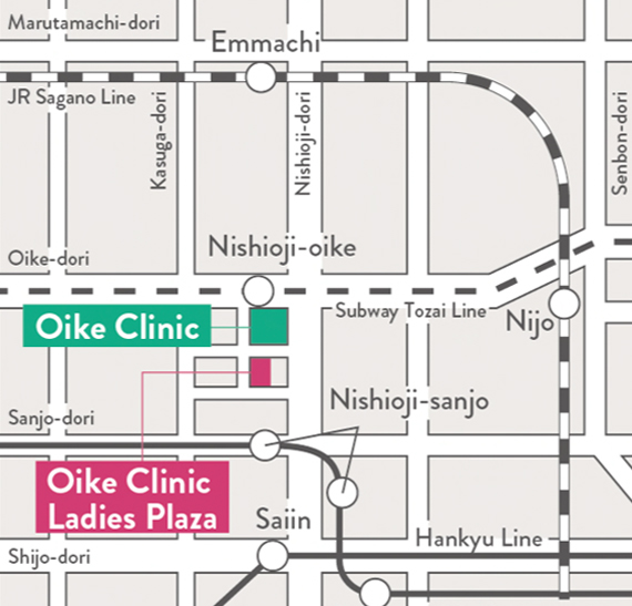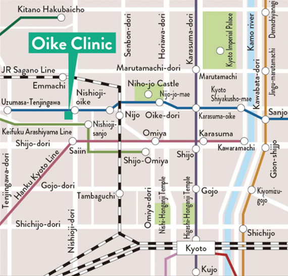 2-minute walk from Nishioji-Oike Station (T16) Exit 3 on the Subway Tozai Line.