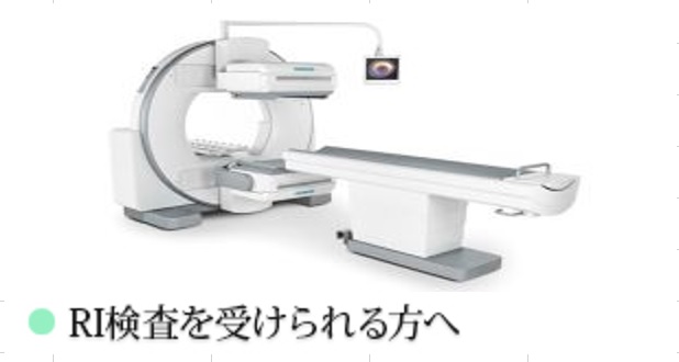 RI検査(骨シンチ・脳血流シンチ・甲状腺シンチ・心筋シンチなど)は放射線同位元素を含んだ薬剤を注射し、ガンマカメラという装置で撮影する検査です。